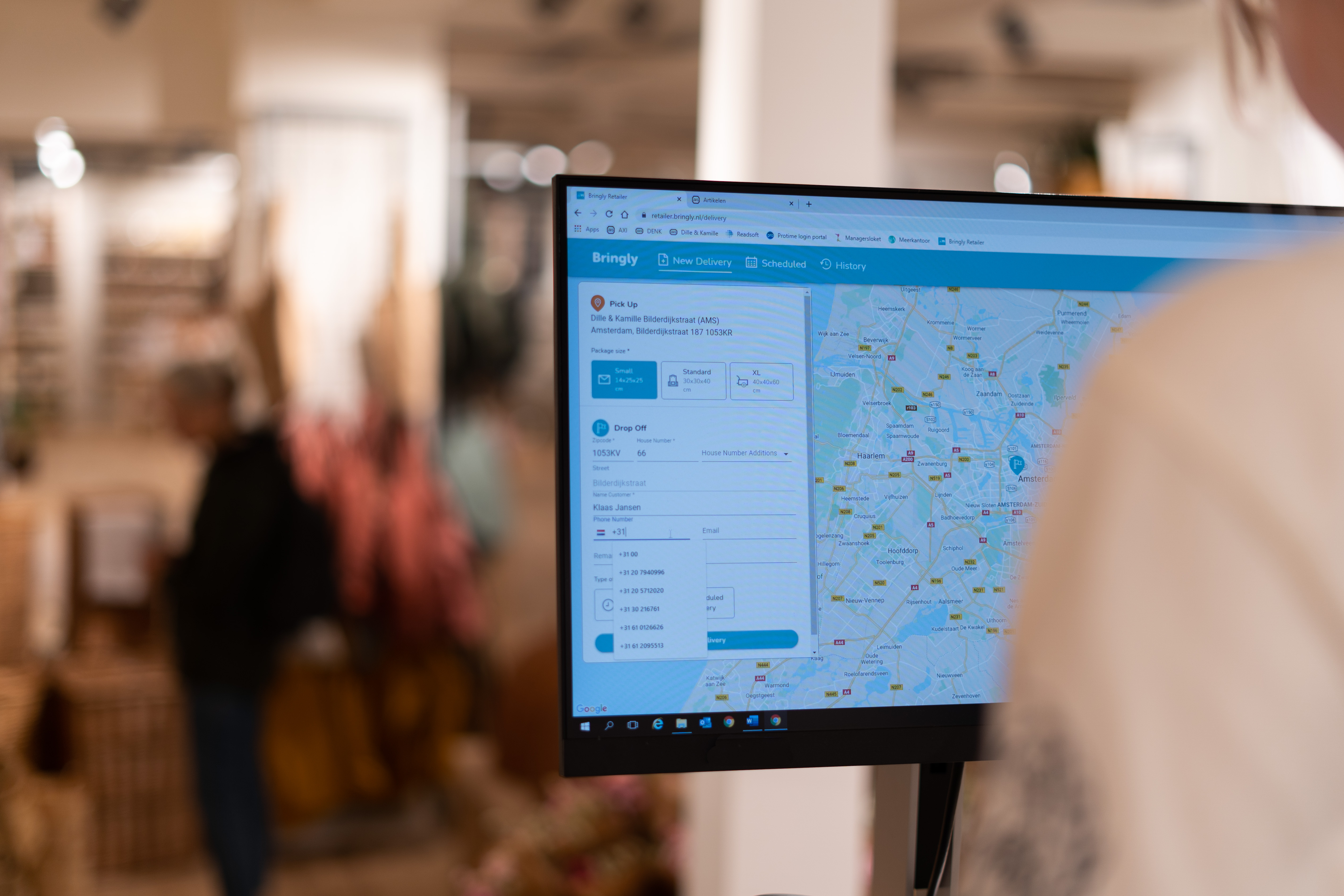 Allereerst bepalen we op basis van de postcode van de besteller én de voorraad van de winkels of het vanuit een winkel kan worden afgeleverd. Zo ja, dan regelt het platform van Bringly dat dit gebeurt middels een fietskoerier. Moet het vanuit ons magazijn komen? Dan gebeurt dat via een elektrisch voertuig of via een bus van DHL die rijdt op groene brandstof.”